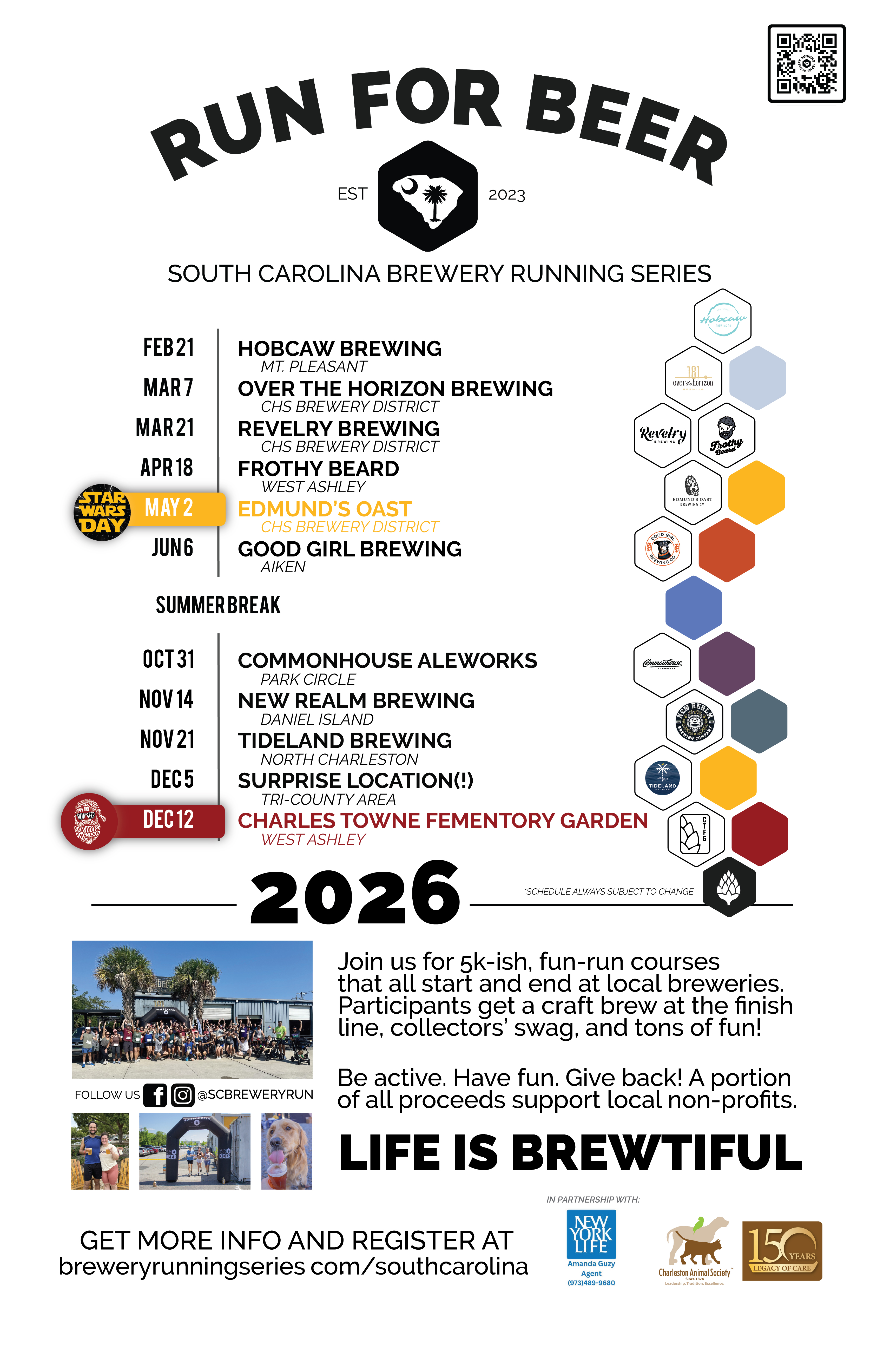 We are the South Carolina Brewery Running Series™ and we run for beer! Join us for fun run courses that all start and end at local breweries.